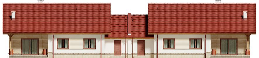 Graficzne opracowanie rzutów poglądowych widocznych na karcie projektu zostało wykonane przez Extradom.pl. Prezentowane przez Extradom.pl wizualizacje wykonane zostały przez autora projektu i należy poczytywać je jedynie za przykład i propozycję wykończenia, wizję architektoniczną autora projektu. Ostateczne wykończenie budynku może nastąpić na wiele sposobów. Szczegółowe rozwiązania zastosowane w oferowanej dokumentacji - w tym również ilość, lokalizacje i wygląd okien, drzwi, kominów - mogą w niewielkim stopniu różnić się od prezentowanej wizualizacji budynku.