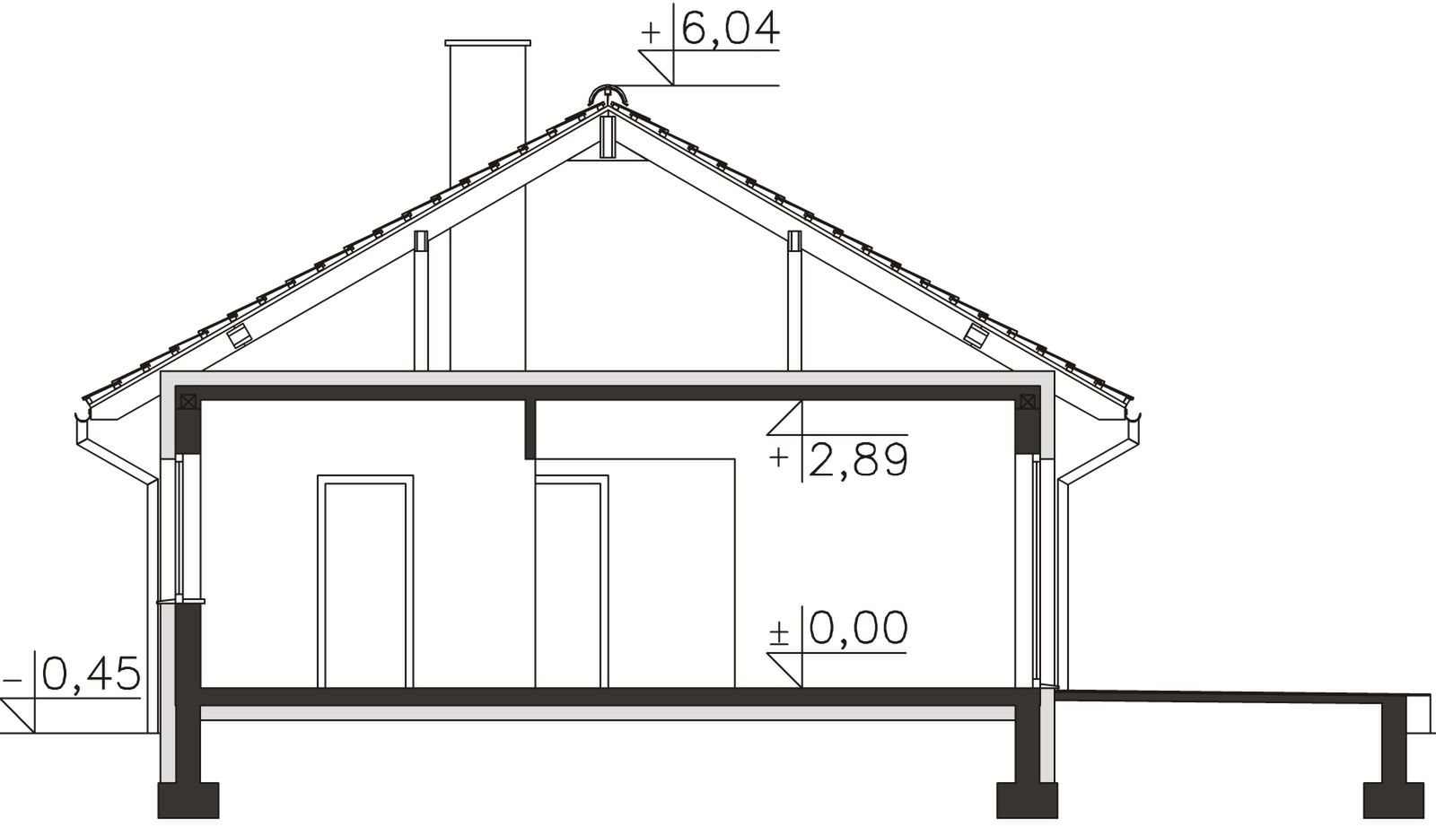 Fundamenty - rozwiązanie o podwyższonej izolacji termicznej. Ściany zewnętrzne - Pustak ceramiczny 25 cm + styropian 15 cm. Strop - drewniany. Dach - wiązary prefabrykowane. Ogrzewanie - c.o. grzejnikowe + c.w.u. - kocioł gazowy. Wentylacja - grawitacyjna.