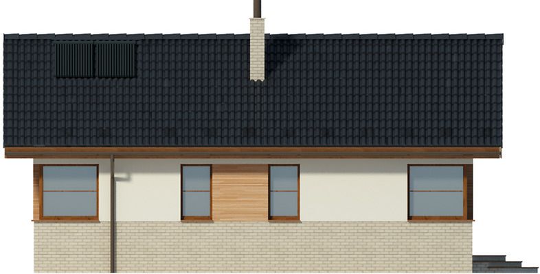 Graficzne opracowanie rzutów poglądowych widocznych na karcie projektu zostało wykonane przez Extradom.pl. Prezentowane przez Extradom.pl wizualizacje wykonane zostały przez autora projektu i należy poczytywać je jedynie za przykład i propozycję wykończenia, wizję architektoniczną autora projektu. Ostateczne wykończenie budynku może nastąpić na wiele sposobów. Szczegółowe rozwiązania zastosowane w oferowanej dokumentacji - w tym również ilość, lokalizacje i wygląd okien, drzwi, kominów - mogą w niewielkim stopniu różnić się od prezentowanej wizualizacji budynku.