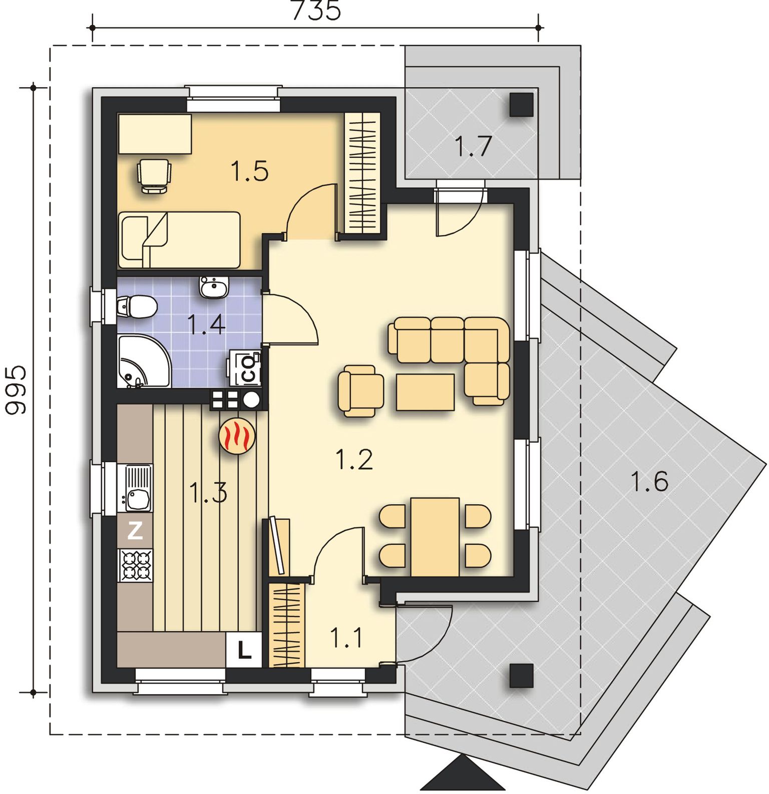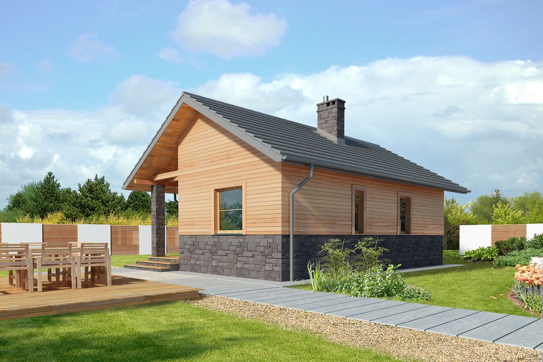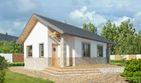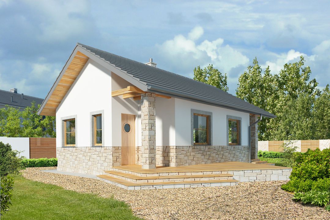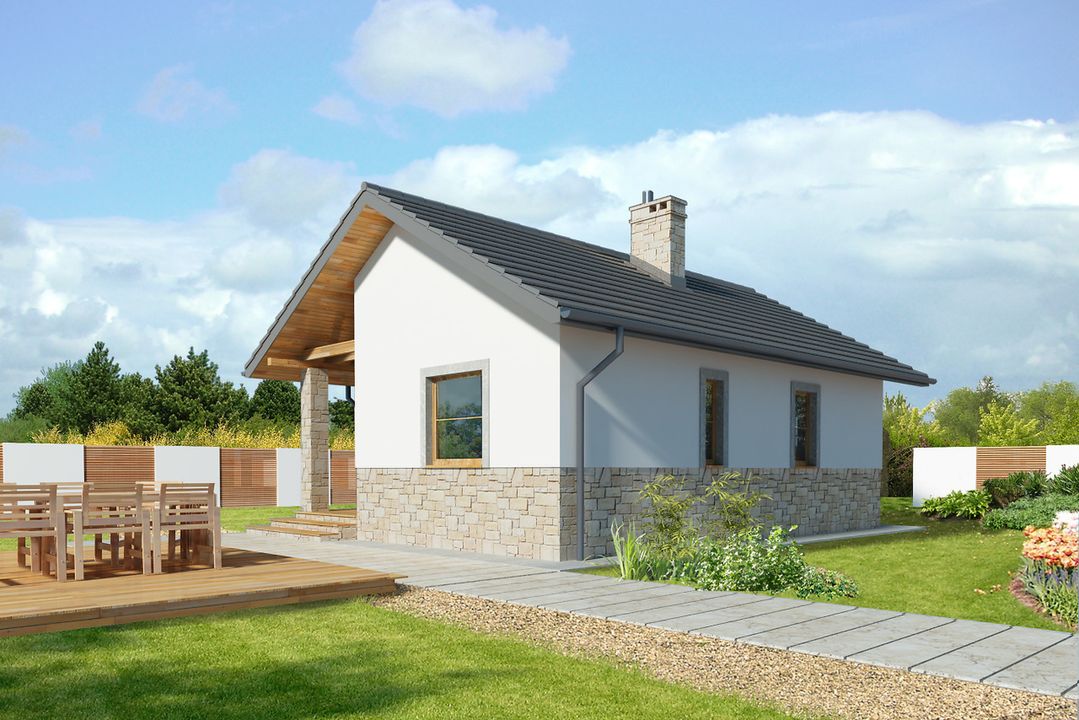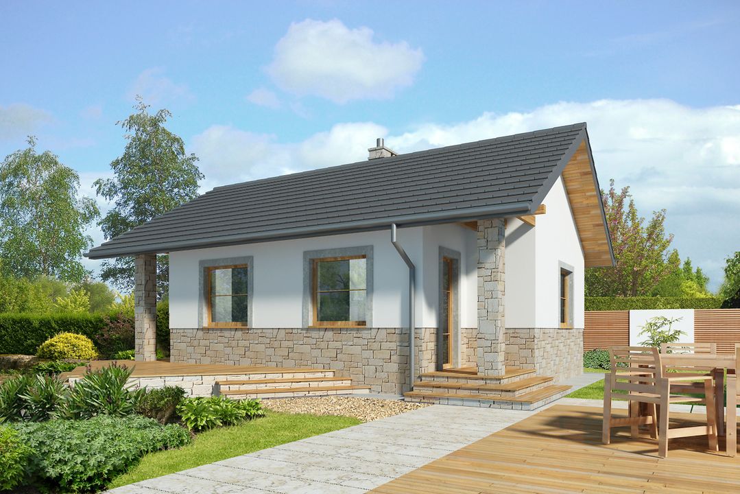 Graficzne opracowanie rzutów poglądowych widocznych na karcie projektu zostało wykonane przez Extradom.pl. Prezentowane przez Extradom.pl wizualizacje wykonane zostały przez autora projektu i należy poczytywać je jedynie za przykład i propozycję wykończenia, wizję architektoniczną autora projektu. Ostateczne wykończenie budynku może nastąpić na wiele sposobów. Szczegółowe rozwiązania zastosowane w oferowanej dokumentacji - w tym również ilość, lokalizacje i wygląd okien, drzwi, kominów - mogą w niewielkim stopniu różnić się od prezentowanej wizualizacji budynku.