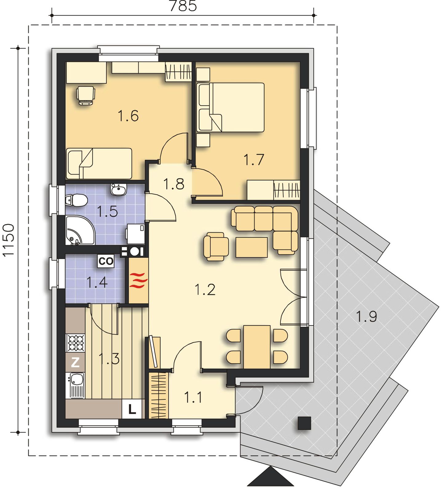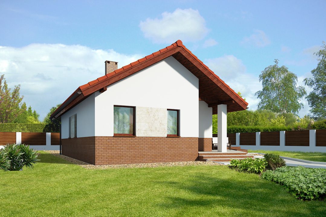 Graficzne opracowanie rzutów poglądowych widocznych na karcie projektu zostało wykonane przez Extradom.pl. Prezentowane przez Extradom.pl wizualizacje wykonane zostały przez autora projektu i należy poczytywać je jedynie za przykład i propozycję wykończenia, wizję architektoniczną autora projektu. Ostateczne wykończenie budynku może nastąpić na wiele sposobów. Szczegółowe rozwiązania zastosowane w oferowanej dokumentacji - w tym również ilość, lokalizacje i wygląd okien, drzwi, kominów - mogą w niewielkim stopniu różnić się od prezentowanej wizualizacji budynku.