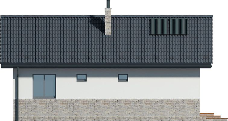 Graficzne opracowanie rzutów poglądowych widocznych na karcie projektu zostało wykonane przez Extradom.pl. Prezentowane przez Extradom.pl wizualizacje wykonane zostały przez autora projektu i należy poczytywać je jedynie za przykład i propozycję wykończenia, wizję architektoniczną autora projektu. Ostateczne wykończenie budynku może nastąpić na wiele sposobów. Szczegółowe rozwiązania zastosowane w oferowanej dokumentacji - w tym również ilość, lokalizacje i wygląd okien, drzwi, kominów - mogą w niewielkim stopniu różnić się od prezentowanej wizualizacji budynku.