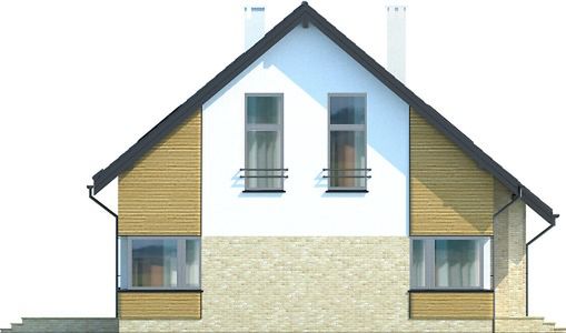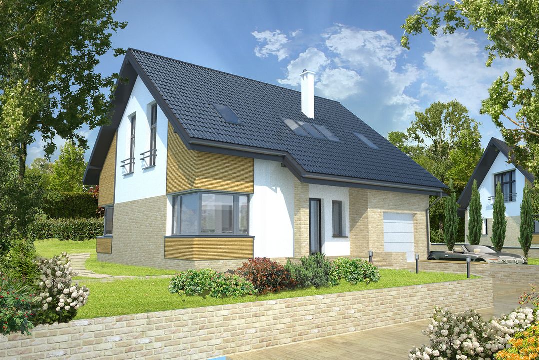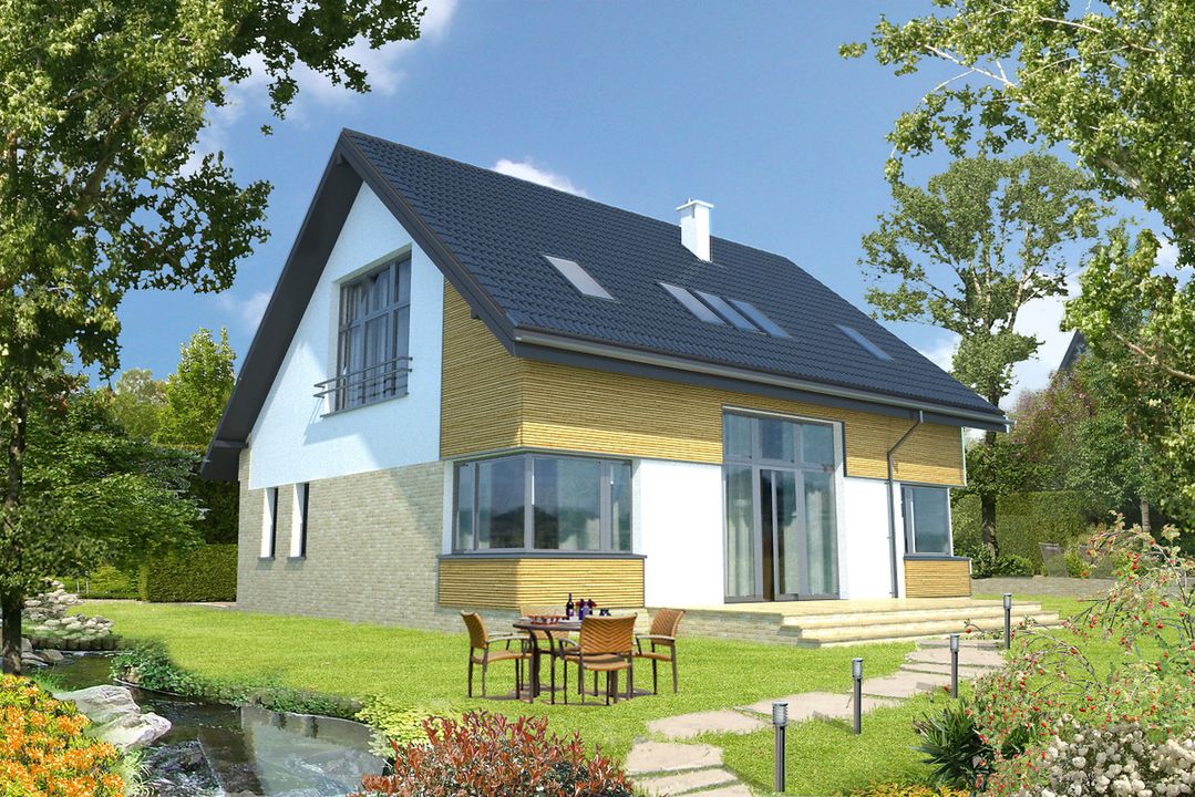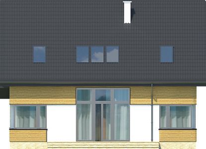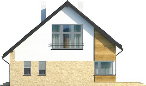Graficzne opracowanie rzutów poglądowych widocznych na karcie projektu zostało wykonane przez Extradom.pl. Prezentowane przez Extradom.pl wizualizacje wykonane zostały przez autora projektu i należy poczytywać je jedynie za przykład i propozycję wykończenia, wizję architektoniczną autora projektu. Ostateczne wykończenie budynku może nastąpić na wiele sposobów. Szczegółowe rozwiązania zastosowane w oferowanej dokumentacji - w tym również ilość, lokalizacje i wygląd okien, drzwi, kominów - mogą w niewielkim stopniu różnić się od prezentowanej wizualizacji budynku.