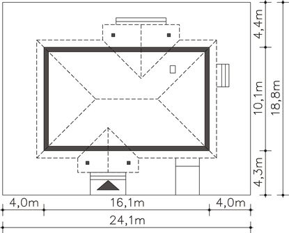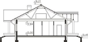 Graficzne opracowanie rzutów poglądowych widocznych na karcie projektu zostało wykonane przez Extradom.pl. Prezentowane przez Extradom.pl wizualizacje wykonane zostały przez autora projektu i należy poczytywać je jedynie za przykład i propozycję wykończenia, wizję architektoniczną autora projektu. Ostateczne wykończenie budynku może nastąpić na wiele sposobów. Szczegółowe rozwiązania zastosowane w oferowanej dokumentacji - w tym również ilość, lokalizacje i wygląd okien, drzwi, kominów - mogą w niewielkim stopniu różnić się od prezentowanej wizualizacji budynku.