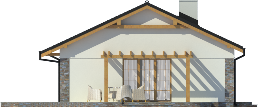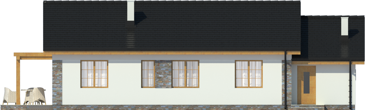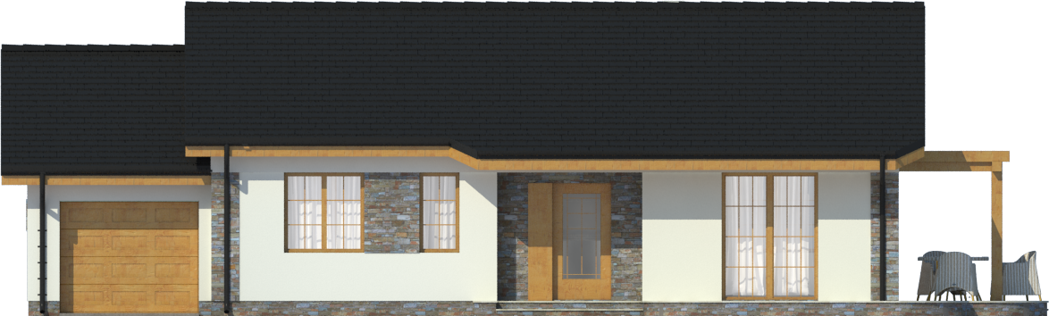 Graficzne opracowanie rzutów poglądowych widocznych na karcie projektu zostało wykonane przez Extradom.pl. Prezentowane przez Extradom.pl wizualizacje wykonane zostały przez autora projektu i należy poczytywać je jedynie za przykład i propozycję wykończenia, wizję architektoniczną autora projektu. Ostateczne wykończenie budynku może nastąpić na wiele sposobów. Szczegółowe rozwiązania zastosowane w oferowanej dokumentacji - w tym również ilość, lokalizacje i wygląd okien, drzwi, kominów - mogą w niewielkim stopniu różnić się od prezentowanej wizualizacji budynku.