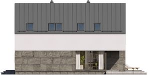 Graficzne opracowanie rzutów poglądowych widocznych na karcie projektu zostało wykonane przez Extradom.pl. Prezentowane przez Extradom.pl wizualizacje wykonane zostały przez autora projektu i należy poczytywać je jedynie za przykład i propozycję wykończenia, wizję architektoniczną autora projektu. Ostateczne wykończenie budynku może nastąpić na wiele sposobów. Szczegółowe rozwiązania zastosowane w oferowanej dokumentacji - w tym również ilość, lokalizacje i wygląd okien, drzwi, kominów - mogą w niewielkim stopniu różnić się od prezentowanej wizualizacji budynku.