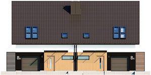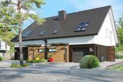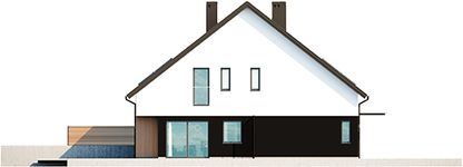 Graficzne opracowanie rzutów poglądowych widocznych na karcie projektu zostało wykonane przez Extradom.pl. Prezentowane przez Extradom.pl wizualizacje wykonane zostały przez autora projektu i należy poczytywać je jedynie za przykład i propozycję wykończenia, wizję architektoniczną autora projektu. Ostateczne wykończenie budynku może nastąpić na wiele sposobów. Szczegółowe rozwiązania zastosowane w oferowanej dokumentacji - w tym również ilość, lokalizacje i wygląd okien, drzwi, kominów - mogą w niewielkim stopniu różnić się od prezentowanej wizualizacji budynku.