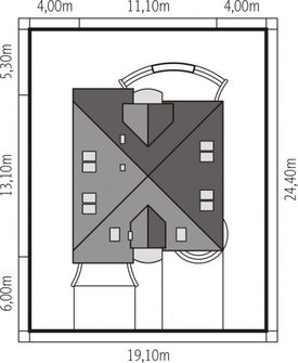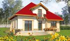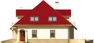 Graficzne opracowanie rzutów poglądowych widocznych na karcie projektu zostało wykonane przez Extradom.pl. Prezentowane przez Extradom.pl wizualizacje wykonane zostały przez autora projektu i należy poczytywać je jedynie za przykład i propozycję wykończenia, wizję architektoniczną autora projektu. Ostateczne wykończenie budynku może nastąpić na wiele sposobów. Szczegółowe rozwiązania zastosowane w oferowanej dokumentacji - w tym również ilość, lokalizacje i wygląd okien, drzwi, kominów - mogą w niewielkim stopniu różnić się od prezentowanej wizualizacji budynku.