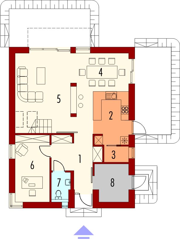 Graficzne opracowanie rzutów poglądowych widocznych na karcie projektu zostało wykonane przez Extradom.pl. Prezentowane przez Extradom.pl wizualizacje wykonane zostały przez autora projektu i należy poczytywać je jedynie za przykład i propozycję wykończenia, wizję architektoniczną autora projektu. Ostateczne wykończenie budynku może nastąpić na wiele sposobów. Szczegółowe rozwiązania zastosowane w oferowanej dokumentacji - w tym również ilość, lokalizacje i wygląd okien, drzwi, kominów - mogą w niewielkim stopniu różnić się od prezentowanej wizualizacji budynku.