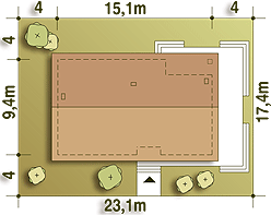 Graficzne opracowanie rzutów poglądowych widocznych na karcie projektu zostało wykonane przez Extradom.pl. Prezentowane przez Extradom.pl wizualizacje wykonane zostały przez autora projektu i należy poczytywać je jedynie za przykład i propozycję wykończenia, wizję architektoniczną autora projektu. Ostateczne wykończenie budynku może nastąpić na wiele sposobów. Szczegółowe rozwiązania zastosowane w oferowanej dokumentacji - w tym również ilość, lokalizacje i wygląd okien, drzwi, kominów - mogą w niewielkim stopniu różnić się od prezentowanej wizualizacji budynku.