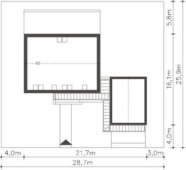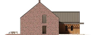 Graficzne opracowanie rzutów poglądowych widocznych na karcie projektu zostało wykonane przez Extradom.pl. Prezentowane przez Extradom.pl wizualizacje wykonane zostały przez autora projektu i należy poczytywać je jedynie za przykład i propozycję wykończenia, wizję architektoniczną autora projektu. Ostateczne wykończenie budynku może nastąpić na wiele sposobów. Szczegółowe rozwiązania zastosowane w oferowanej dokumentacji - w tym również ilość, lokalizacje i wygląd okien, drzwi, kominów - mogą w niewielkim stopniu różnić się od prezentowanej wizualizacji budynku.