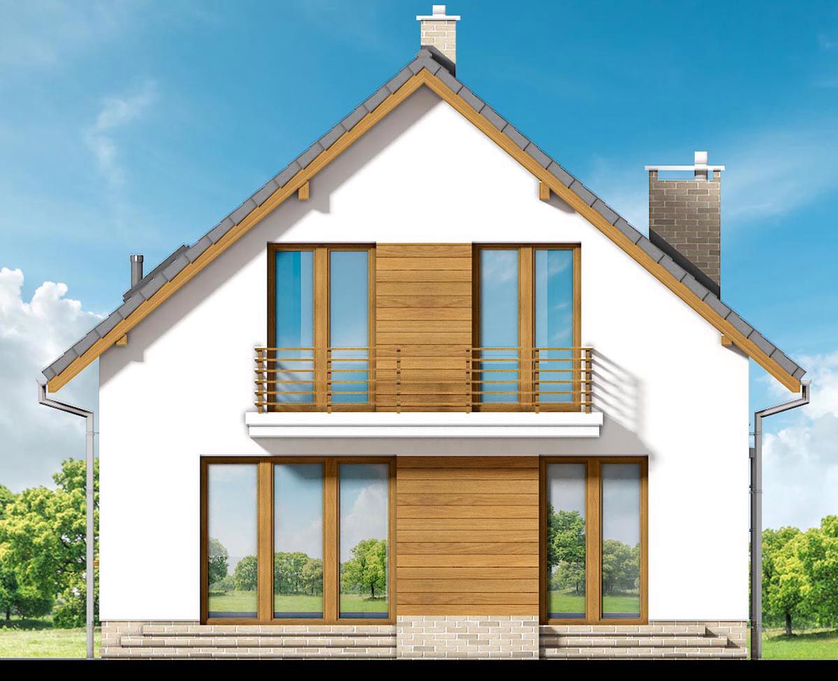 Graficzne opracowanie rzutów poglądowych widocznych na karcie projektu zostało wykonane przez Extradom.pl. Prezentowane przez Extradom.pl wizualizacje wykonane zostały przez autora projektu i należy poczytywać je jedynie za przykład i propozycję wykończenia, wizję architektoniczną autora projektu. Ostateczne wykończenie budynku może nastąpić na wiele sposobów. Szczegółowe rozwiązania zastosowane w oferowanej dokumentacji - w tym również ilość, lokalizacje i wygląd okien, drzwi, kominów - mogą w niewielkim stopniu różnić się od prezentowanej wizualizacji budynku.