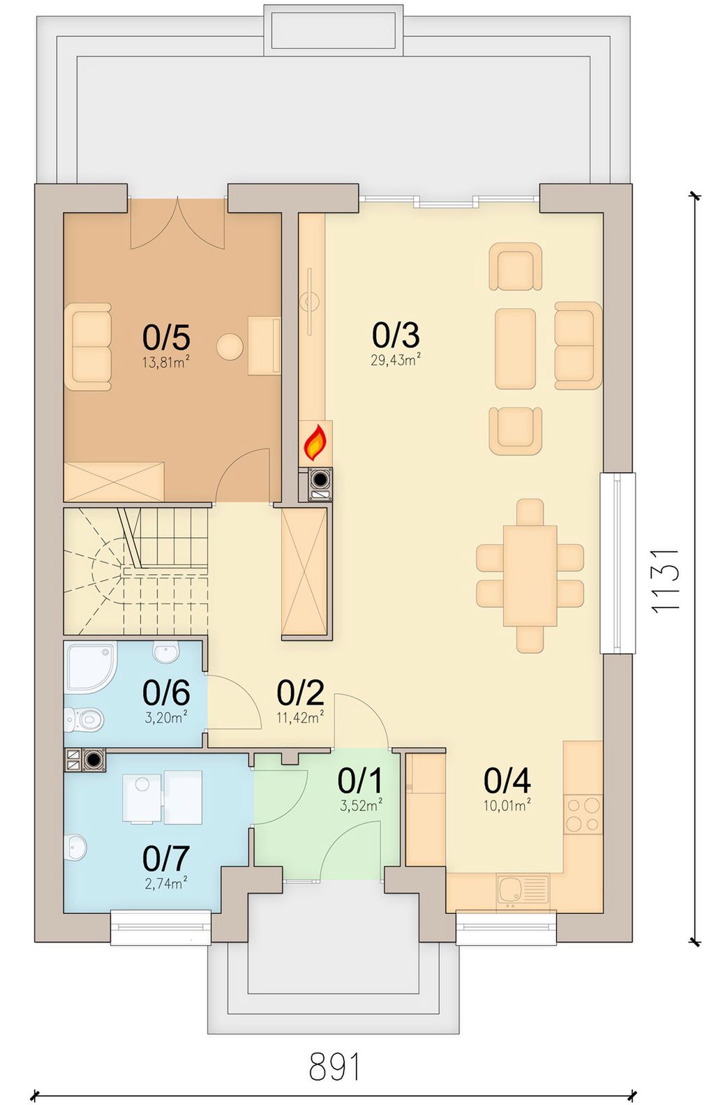 Graficzne opracowanie rzutów poglądowych widocznych na karcie projektu zostało wykonane przez Extradom.pl. Prezentowane przez Extradom.pl wizualizacje wykonane zostały przez autora projektu i należy poczytywać je jedynie za przykład i propozycję wykończenia, wizję architektoniczną autora projektu. Ostateczne wykończenie budynku może nastąpić na wiele sposobów. Szczegółowe rozwiązania zastosowane w oferowanej dokumentacji - w tym również ilość, lokalizacje i wygląd okien, drzwi, kominów - mogą w niewielkim stopniu różnić się od prezentowanej wizualizacji budynku.