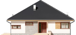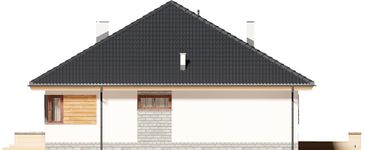 Graficzne opracowanie rzutów poglądowych widocznych na karcie projektu zostało wykonane przez Extradom.pl. Prezentowane przez Extradom.pl wizualizacje wykonane zostały przez autora projektu i należy poczytywać je jedynie za przykład i propozycję wykończenia, wizję architektoniczną autora projektu. Ostateczne wykończenie budynku może nastąpić na wiele sposobów. Szczegółowe rozwiązania zastosowane w oferowanej dokumentacji - w tym również ilość, lokalizacje i wygląd okien, drzwi, kominów - mogą w niewielkim stopniu różnić się od prezentowanej wizualizacji budynku.