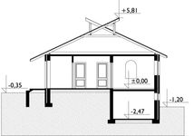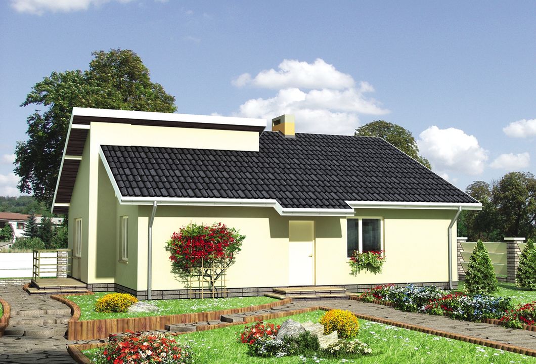 Graficzne opracowanie rzutów poglądowych widocznych na karcie projektu zostało wykonane przez Extradom.pl. Prezentowane przez Extradom.pl wizualizacje wykonane zostały przez autora projektu i należy poczytywać je jedynie za przykład i propozycję wykończenia, wizję architektoniczną autora projektu. Ostateczne wykończenie budynku może nastąpić na wiele sposobów. Szczegółowe rozwiązania zastosowane w oferowanej dokumentacji - w tym również ilość, lokalizacje i wygląd okien, drzwi, kominów - mogą w niewielkim stopniu różnić się od prezentowanej wizualizacji budynku.