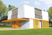 Budynek zaprojektowano w technologii murowej ze stropem gęstożebrowym. Schody wewnętrzne drewniane. Stropodach kryty papą termozgrzewalną. Elewację wykonano z tynku mineralnego zatartego na gładko i barwionego drewna. Balustrady wykonano z matowej, nierdzewnej stali. Stolarka okienna drewniana.