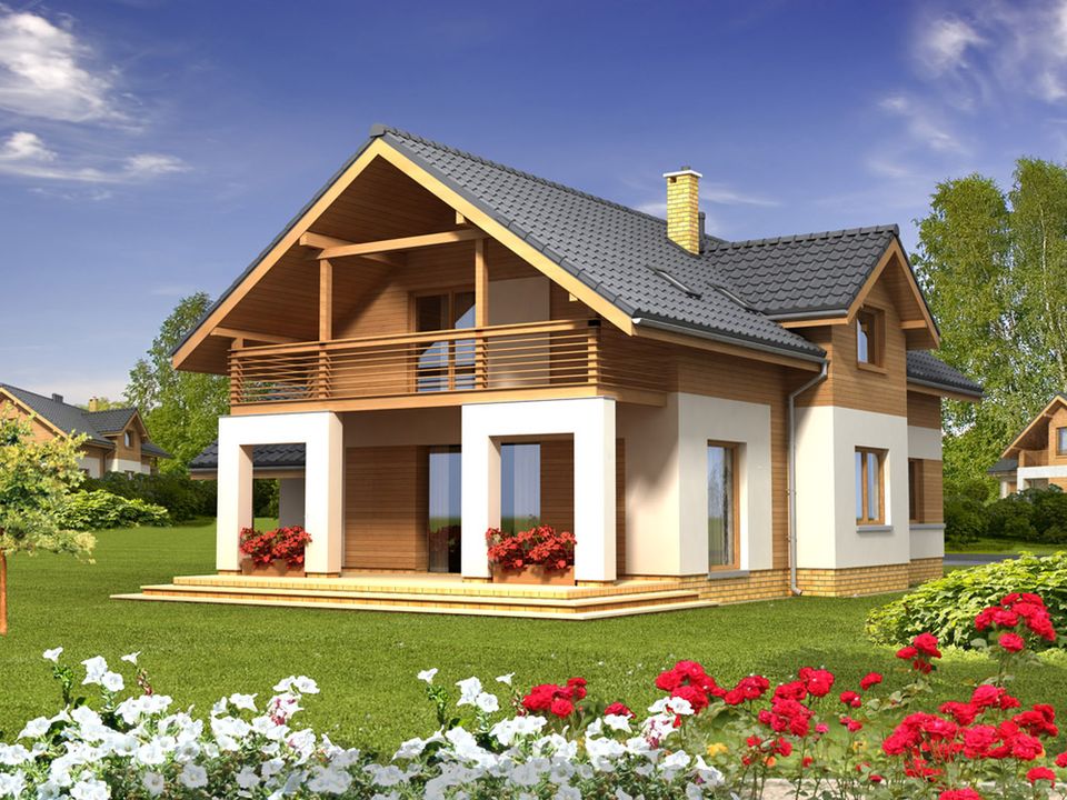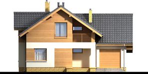 Graficzne opracowanie rzutów poglądowych widocznych na karcie projektu zostało wykonane przez Extradom.pl. Prezentowane przez Extradom.pl wizualizacje wykonane zostały przez autora projektu i należy poczytywać je jedynie za przykład i propozycję wykończenia, wizję architektoniczną autora projektu. Ostateczne wykończenie budynku może nastąpić na wiele sposobów. Szczegółowe rozwiązania zastosowane w oferowanej dokumentacji - w tym również ilość, lokalizacje i wygląd okien, drzwi, kominów - mogą w niewielkim stopniu różnić się od prezentowanej wizualizacji budynku.