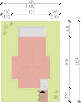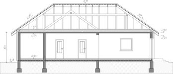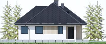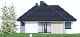 Graficzne opracowanie rzutów poglądowych widocznych na karcie projektu zostało wykonane przez Extradom.pl. Prezentowane przez Extradom.pl wizualizacje wykonane zostały przez autora projektu i należy poczytywać je jedynie za przykład i propozycję wykończenia, wizję architektoniczną autora projektu. Ostateczne wykończenie budynku może nastąpić na wiele sposobów. Szczegółowe rozwiązania zastosowane w oferowanej dokumentacji - w tym również ilość, lokalizacje i wygląd okien, drzwi, kominów - mogą w niewielkim stopniu różnić się od prezentowanej wizualizacji budynku.