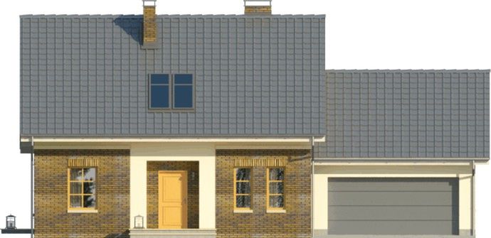 Graficzne opracowanie rzutów poglądowych widocznych na karcie projektu zostało wykonane przez Extradom.pl. Prezentowane przez Extradom.pl wizualizacje wykonane zostały przez autora projektu i należy poczytywać je jedynie za przykład i propozycję wykończenia, wizję architektoniczną autora projektu. Ostateczne wykończenie budynku może nastąpić na wiele sposobów. Szczegółowe rozwiązania zastosowane w oferowanej dokumentacji - w tym również ilość, lokalizacje i wygląd okien, drzwi, kominów - mogą w niewielkim stopniu różnić się od prezentowanej wizualizacji budynku.