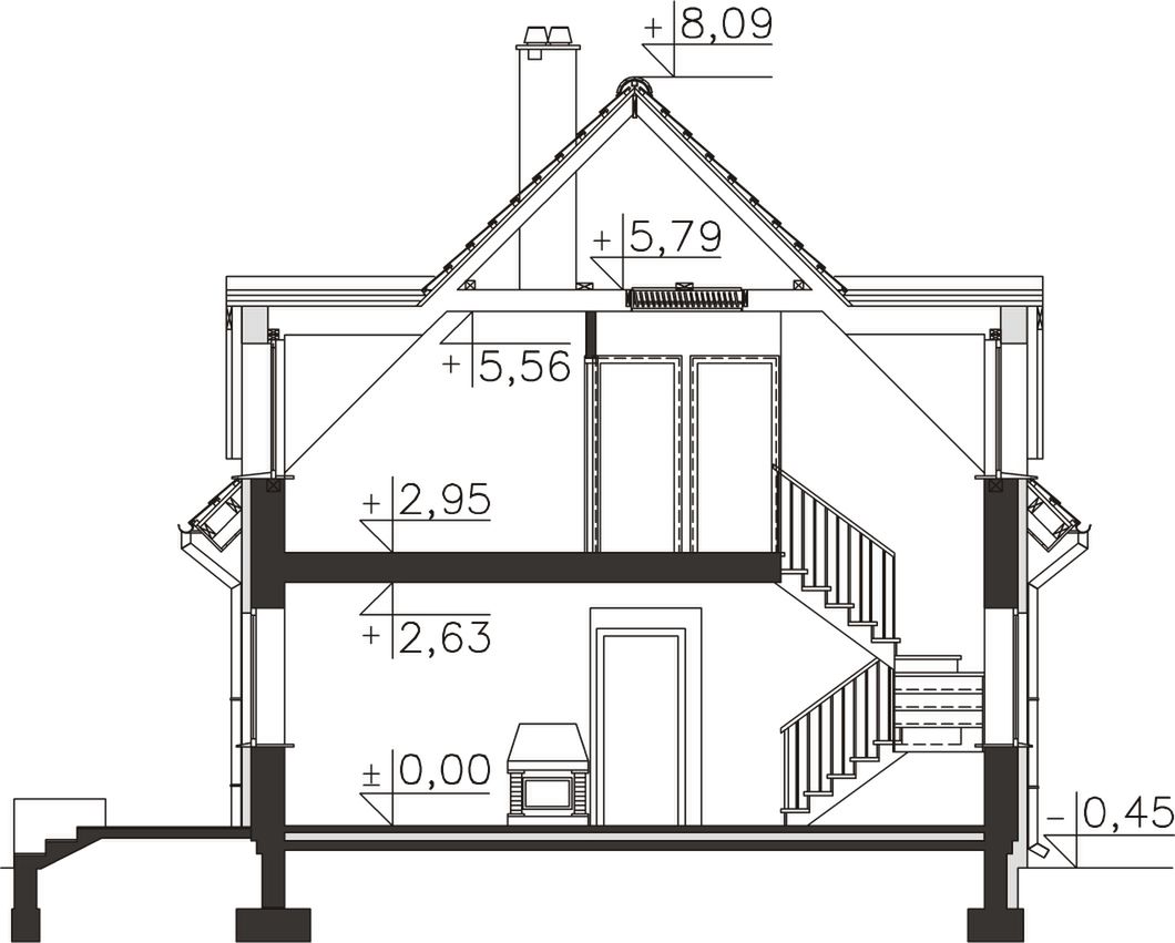 Fundamenty - rozwiązanie o podwyższonej izolacji termicznej. Ściany zewnętrzne - Bloczek betonu komórkowego 36,5 cm + styropian 10 cm. Strop - gęstożebrowy. Dach - tradycyjna więźba ciesielska. Ogrzewanie - c.o. grzejnikowe + c.w.u. - kocioł gazowy. Wentylacja - grawitacyjna.