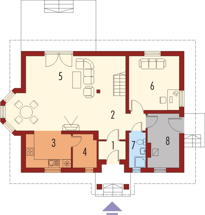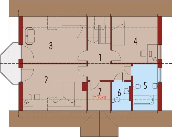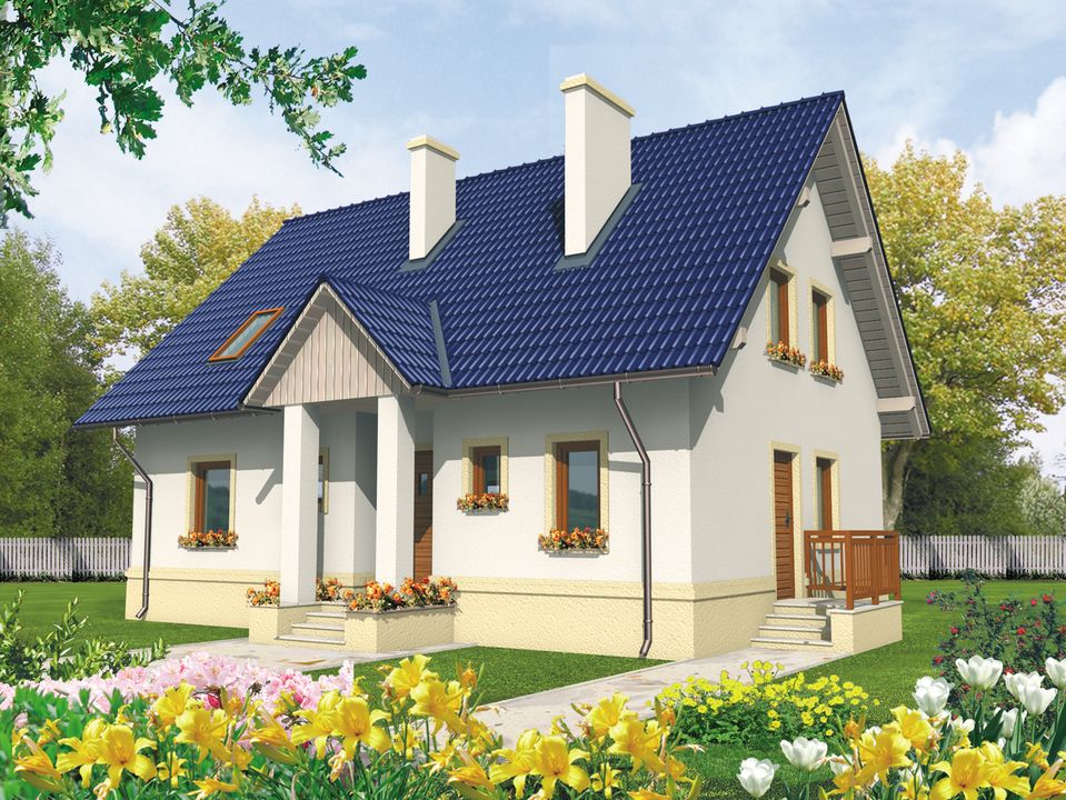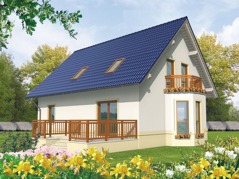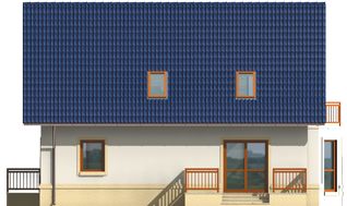 Graficzne opracowanie rzutów poglądowych widocznych na karcie projektu zostało wykonane przez Extradom.pl. Prezentowane przez Extradom.pl wizualizacje wykonane zostały przez autora projektu i należy poczytywać je jedynie za przykład i propozycję wykończenia, wizję architektoniczną autora projektu. Ostateczne wykończenie budynku może nastąpić na wiele sposobów. Szczegółowe rozwiązania zastosowane w oferowanej dokumentacji - w tym również ilość, lokalizacje i wygląd okien, drzwi, kominów - mogą w niewielkim stopniu różnić się od prezentowanej wizualizacji budynku.