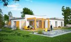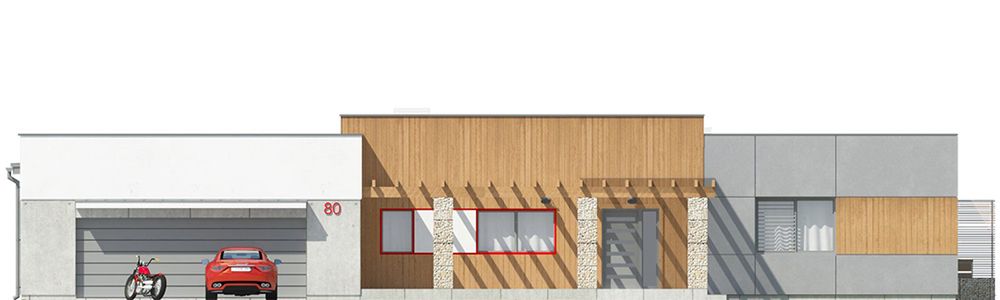 Graficzne opracowanie rzutów poglądowych widocznych na karcie projektu zostało wykonane przez Extradom.pl. Prezentowane przez Extradom.pl wizualizacje wykonane zostały przez autora projektu i należy poczytywać je jedynie za przykład i propozycję wykończenia, wizję architektoniczną autora projektu. Ostateczne wykończenie budynku może nastąpić na wiele sposobów. Szczegółowe rozwiązania zastosowane w oferowanej dokumentacji - w tym również ilość, lokalizacje i wygląd okien, drzwi, kominów - mogą w niewielkim stopniu różnić się od prezentowanej wizualizacji budynku.