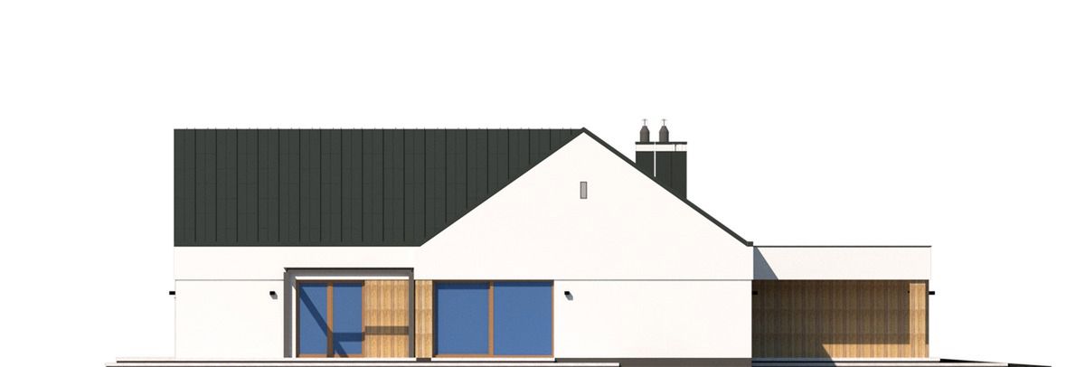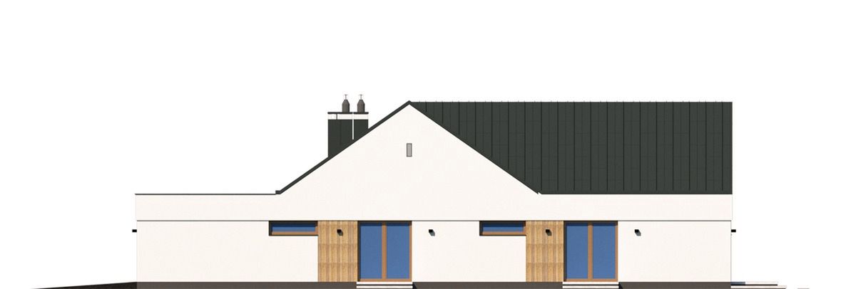 Graficzne opracowanie rzutów poglądowych widocznych na karcie projektu zostało wykonane przez Extradom.pl. Prezentowane przez Extradom.pl wizualizacje wykonane zostały przez autora projektu i należy poczytywać je jedynie za przykład i propozycję wykończenia, wizję architektoniczną autora projektu. Ostateczne wykończenie budynku może nastąpić na wiele sposobów. Szczegółowe rozwiązania zastosowane w oferowanej dokumentacji - w tym również ilość, lokalizacje i wygląd okien, drzwi, kominów - mogą w niewielkim stopniu różnić się od prezentowanej wizualizacji budynku.