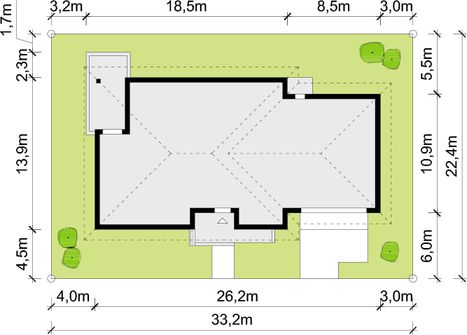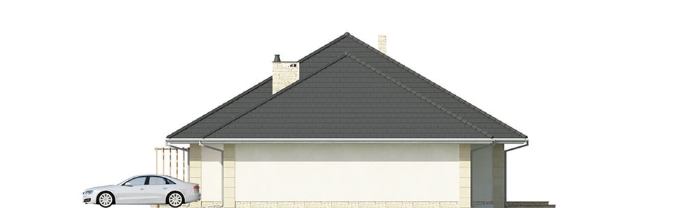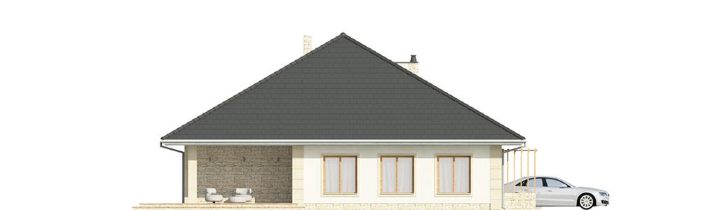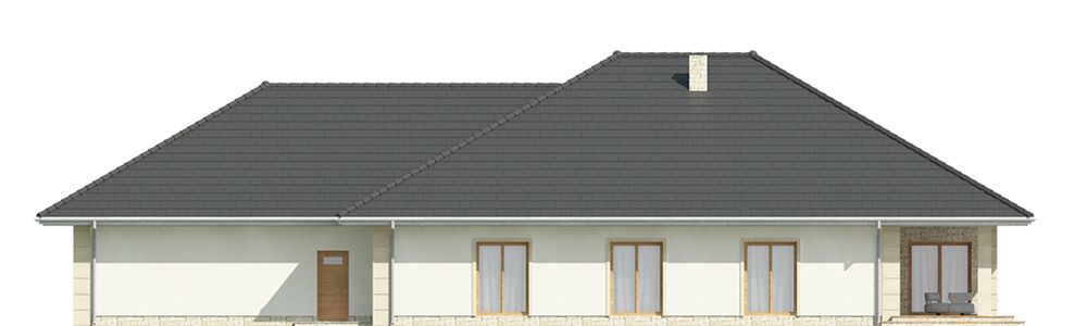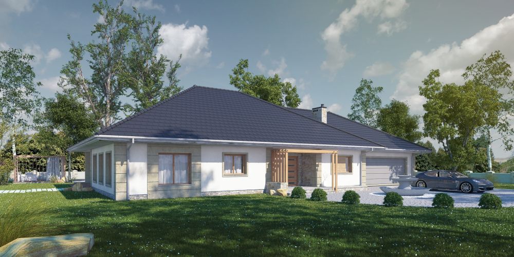 Graficzne opracowanie rzutów poglądowych widocznych na karcie projektu zostało wykonane przez Extradom.pl. Prezentowane przez Extradom.pl wizualizacje wykonane zostały przez autora projektu i należy poczytywać je jedynie za przykład i propozycję wykończenia, wizję architektoniczną autora projektu. Ostateczne wykończenie budynku może nastąpić na wiele sposobów. Szczegółowe rozwiązania zastosowane w oferowanej dokumentacji - w tym również ilość, lokalizacje i wygląd okien, drzwi, kominów - mogą w niewielkim stopniu różnić się od prezentowanej wizualizacji budynku.