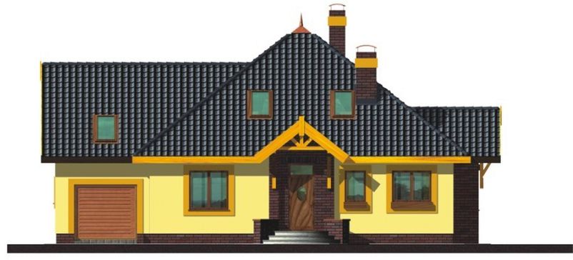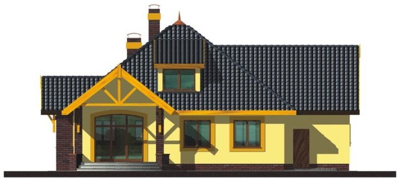 Graficzne opracowanie rzutów poglądowych widocznych na karcie projektu zostało wykonane przez Extradom.pl. Prezentowane przez Extradom.pl wizualizacje wykonane zostały przez autora projektu i należy poczytywać je jedynie za przykład i propozycję wykończenia, wizję architektoniczną autora projektu. Ostateczne wykończenie budynku może nastąpić na wiele sposobów. Szczegółowe rozwiązania zastosowane w oferowanej dokumentacji - w tym również ilość, lokalizacje i wygląd okien, drzwi, kominów - mogą w niewielkim stopniu różnić się od prezentowanej wizualizacji budynku.