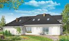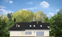 Graficzne opracowanie rzutów poglądowych widocznych na karcie projektu zostało wykonane przez Extradom.pl. Prezentowane przez Extradom.pl wizualizacje wykonane zostały przez autora projektu i należy poczytywać je jedynie za przykład i propozycję wykończenia, wizję architektoniczną autora projektu. Ostateczne wykończenie budynku może nastąpić na wiele sposobów. Szczegółowe rozwiązania zastosowane w oferowanej dokumentacji - w tym również ilość, lokalizacje i wygląd okien, drzwi, kominów - mogą w niewielkim stopniu różnić się od prezentowanej wizualizacji budynku.