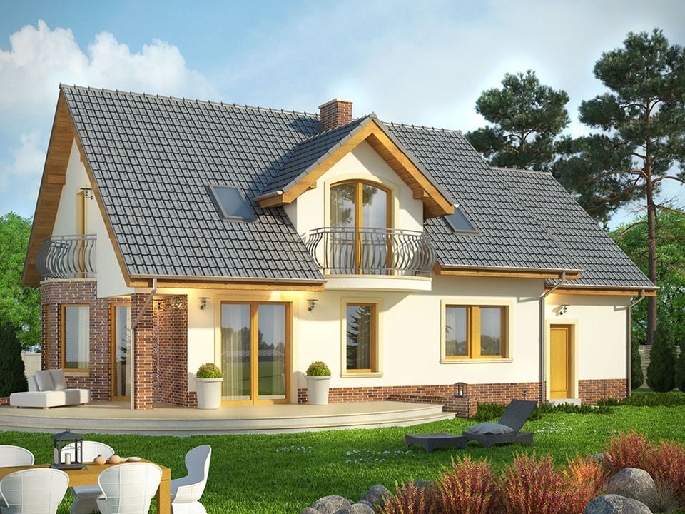 Graficzne opracowanie rzutów poglądowych widocznych na karcie projektu zostało wykonane przez Extradom.pl. Prezentowane przez Extradom.pl wizualizacje wykonane zostały przez autora projektu i należy poczytywać je jedynie za przykład i propozycję wykończenia, wizję architektoniczną autora projektu. Ostateczne wykończenie budynku może nastąpić na wiele sposobów. Szczegółowe rozwiązania zastosowane w oferowanej dokumentacji - w tym również ilość, lokalizacje i wygląd okien, drzwi, kominów - mogą w niewielkim stopniu różnić się od prezentowanej wizualizacji budynku.