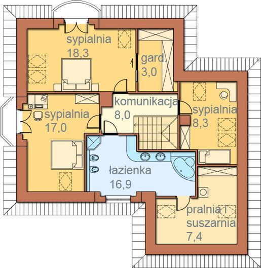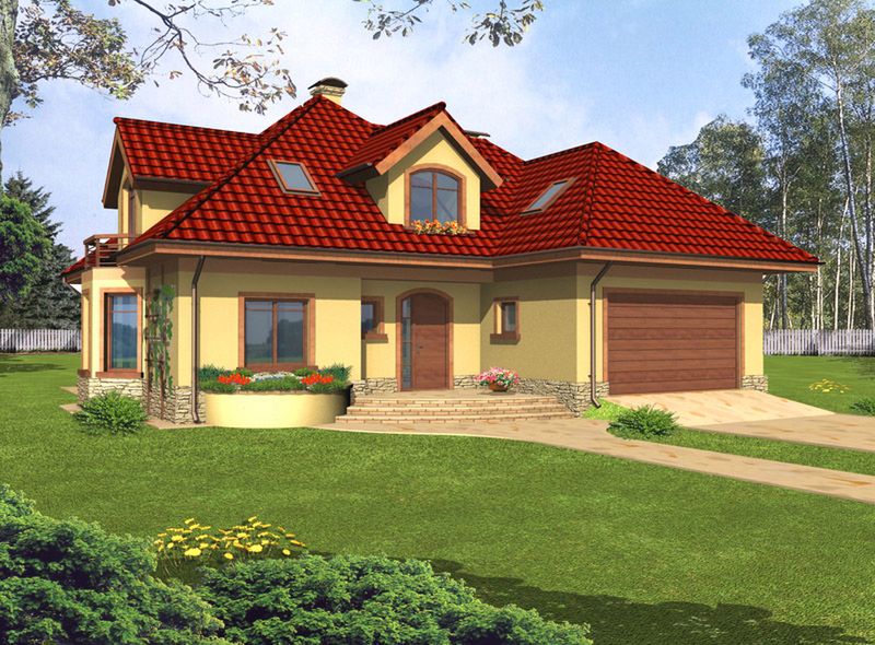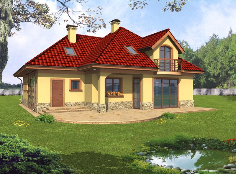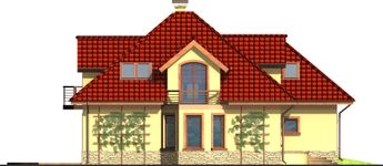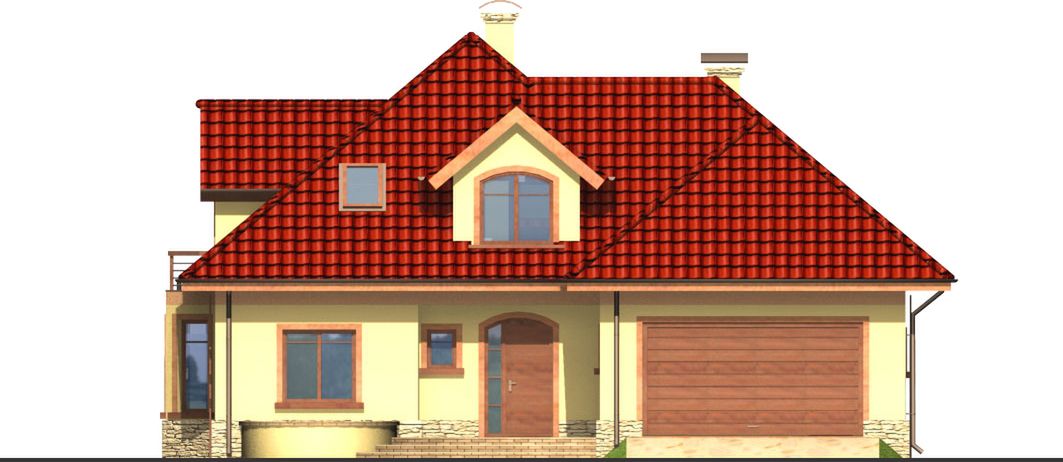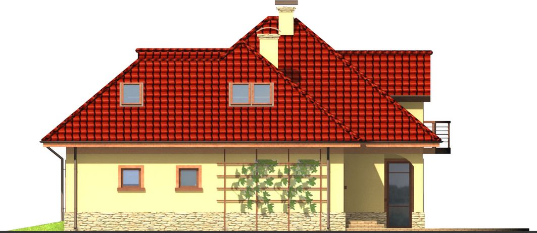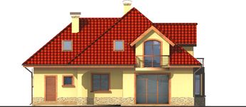 Graficzne opracowanie rzutów poglądowych widocznych na karcie projektu zostało wykonane przez Extradom.pl. Prezentowane przez Extradom.pl wizualizacje wykonane zostały przez autora projektu i należy poczytywać je jedynie za przykład i propozycję wykończenia, wizję architektoniczną autora projektu. Ostateczne wykończenie budynku może nastąpić na wiele sposobów. Szczegółowe rozwiązania zastosowane w oferowanej dokumentacji - w tym również ilość, lokalizacje i wygląd okien, drzwi, kominów - mogą w niewielkim stopniu różnić się od prezentowanej wizualizacji budynku.