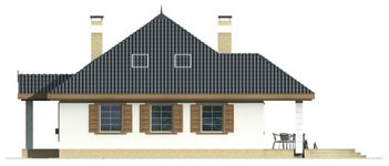 Graficzne opracowanie rzutów poglądowych widocznych na karcie projektu zostało wykonane przez Extradom.pl. Prezentowane przez Extradom.pl wizualizacje wykonane zostały przez autora projektu i należy poczytywać je jedynie za przykład i propozycję wykończenia, wizję architektoniczną autora projektu. Ostateczne wykończenie budynku może nastąpić na wiele sposobów. Szczegółowe rozwiązania zastosowane w oferowanej dokumentacji - w tym również ilość, lokalizacje i wygląd okien, drzwi, kominów - mogą w niewielkim stopniu różnić się od prezentowanej wizualizacji budynku.