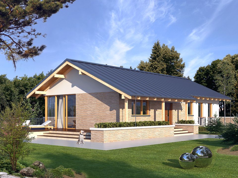 Ściany: 2-warstwowe - bloczek TERMALICA 24 + styropian. Stropy: żelbetowe, wylewane. Dach: blacha na rąbek stojący Ruukki Classic, kąt nachylenia 25° i 30° Zapytaj o kąt 30°. Ogrzewanie: na paliwo stałe, gazowe.