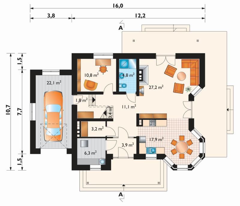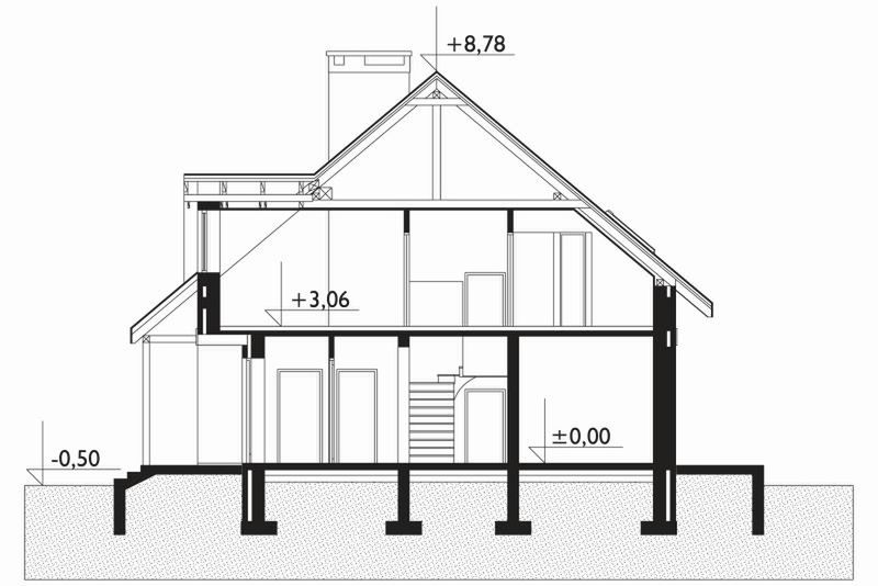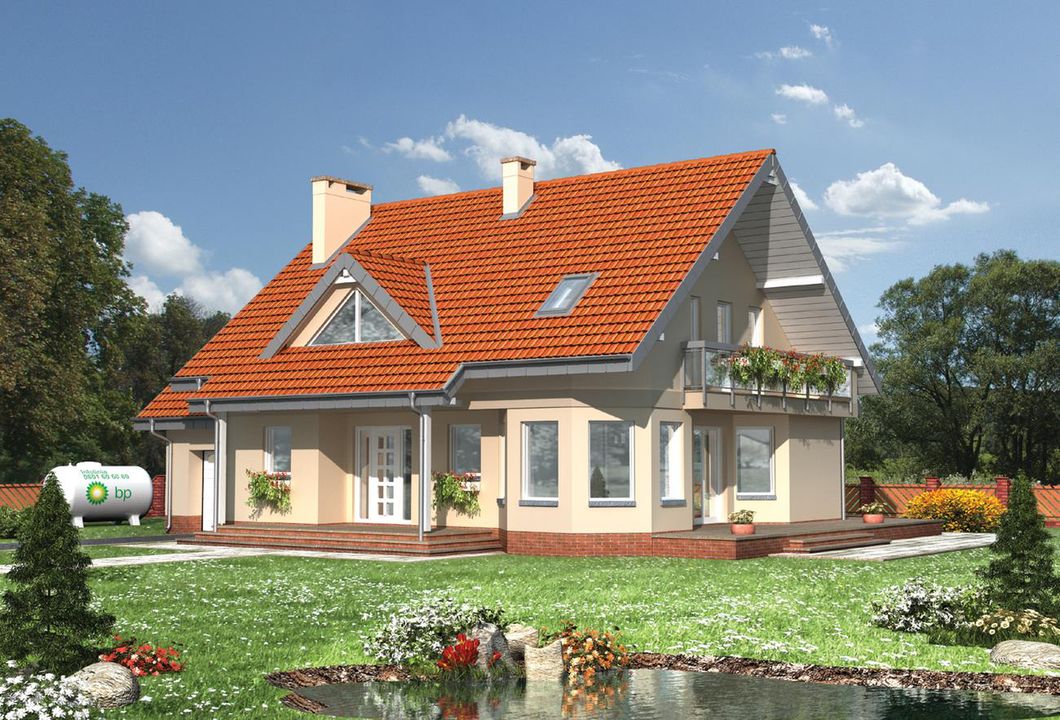 Graficzne opracowanie rzutów poglądowych widocznych na karcie projektu zostało wykonane przez Extradom.pl. Prezentowane przez Extradom.pl wizualizacje wykonane zostały przez autora projektu i należy poczytywać je jedynie za przykład i propozycję wykończenia, wizję architektoniczną autora projektu. Ostateczne wykończenie budynku może nastąpić na wiele sposobów. Szczegółowe rozwiązania zastosowane w oferowanej dokumentacji - w tym również ilość, lokalizacje i wygląd okien, drzwi, kominów - mogą w niewielkim stopniu różnić się od prezentowanej wizualizacji budynku.