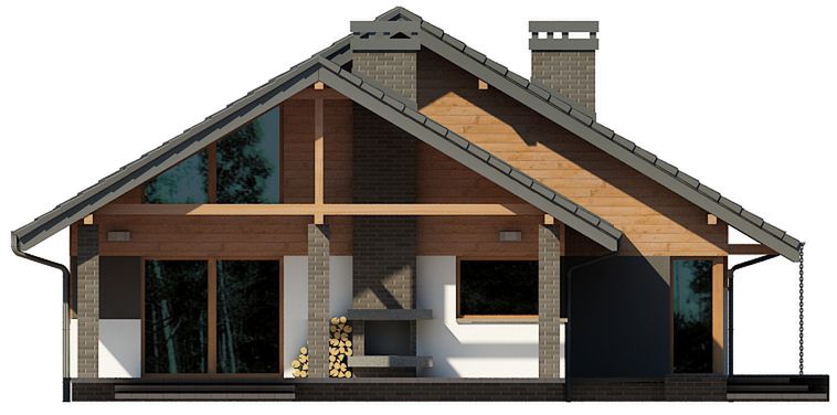 Graficzne opracowanie rzutów poglądowych widocznych na karcie projektu zostało wykonane przez Extradom.pl. Prezentowane przez Extradom.pl wizualizacje wykonane zostały przez autora projektu i należy poczytywać je jedynie za przykład i propozycję wykończenia, wizję architektoniczną autora projektu. Ostateczne wykończenie budynku może nastąpić na wiele sposobów. Szczegółowe rozwiązania zastosowane w oferowanej dokumentacji - w tym również ilość, lokalizacje i wygląd okien, drzwi, kominów - mogą w niewielkim stopniu różnić się od prezentowanej wizualizacji budynku.