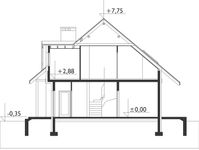 Graficzne opracowanie rzutów poglądowych widocznych na karcie projektu zostało wykonane przez Extradom.pl. Prezentowane przez Extradom.pl wizualizacje wykonane zostały przez autora projektu i należy poczytywać je jedynie za przykład i propozycję wykończenia, wizję architektoniczną autora projektu. Ostateczne wykończenie budynku może nastąpić na wiele sposobów. Szczegółowe rozwiązania zastosowane w oferowanej dokumentacji - w tym również ilość, lokalizacje i wygląd okien, drzwi, kominów - mogą w niewielkim stopniu różnić się od prezentowanej wizualizacji budynku.