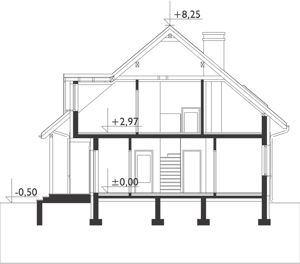 Wersja technologiczna: murowana - beton komórkowy. Strop: żelbetowy monolityczny. Typ schodów: płytowe żelbetowe. Konstrukcja dachu: drewniana płatwiowa. Typ ogrzewania: Kocioł na gaz. Dostępna wersja z pompą ciepła: Tak. Ściany zewnętrzne: 24 cm beton komórkowy. Ściany wewnętrzne: 24 cm beton komórkowy. Ściany wewnętrzne działowe: 12 cm beton komórkowy.