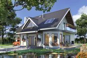 Graficzne opracowanie rzutów poglądowych widocznych na karcie projektu zostało wykonane przez Extradom.pl. Prezentowane przez Extradom.pl wizualizacje wykonane zostały przez autora projektu i należy poczytywać je jedynie za przykład i propozycję wykończenia, wizję architektoniczną autora projektu. Ostateczne wykończenie budynku może nastąpić na wiele sposobów. Szczegółowe rozwiązania zastosowane w oferowanej dokumentacji - w tym również ilość, lokalizacje i wygląd okien, drzwi, kominów - mogą w niewielkim stopniu różnić się od prezentowanej wizualizacji budynku.