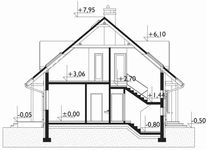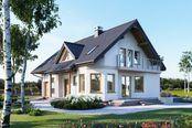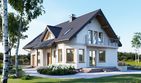Graficzne opracowanie rzutów poglądowych widocznych na karcie projektu zostało wykonane przez Extradom.pl. Prezentowane przez Extradom.pl wizualizacje wykonane zostały przez autora projektu i należy poczytywać je jedynie za przykład i propozycję wykończenia, wizję architektoniczną autora projektu. Ostateczne wykończenie budynku może nastąpić na wiele sposobów. Szczegółowe rozwiązania zastosowane w oferowanej dokumentacji - w tym również ilość, lokalizacje i wygląd okien, drzwi, kominów - mogą w niewielkim stopniu różnić się od prezentowanej wizualizacji budynku.