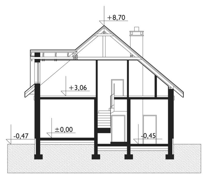 Wersja technologiczna: murowana - beton komórkowy. Strop: żelbetowy monolityczny. Typ schodów: płytowe żelbetowe. Konstrukcja dachu: drewniana krokwiowo-jętkowa. Typ ogrzewania: Kocioł na gaz. Dostępna wersja z pompą ciepła: Tak. Ściany zewnętrzne: 24 cm beton komórkowy. Ściany wewnętrzne: 24 cm beton komórkowy. Ściany wewnętrzne działowe: 12 cm beton komórkowy.