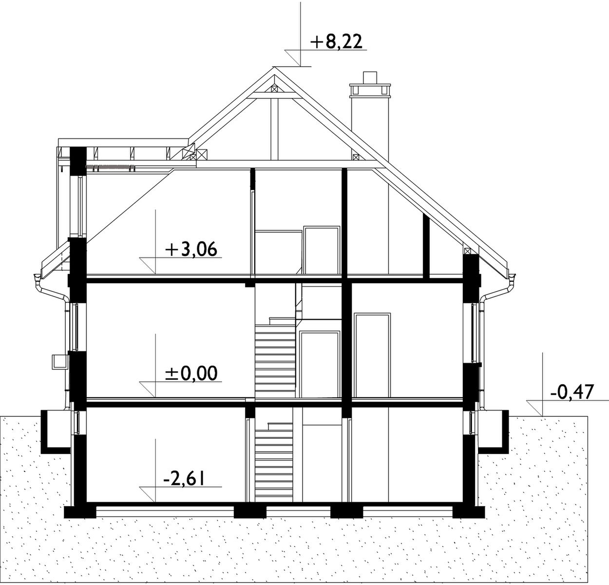 Wersja technologiczna: murowana - beton komórkowy. Strop: żelbetowy monolityczny. Typ schodów: płytowe żelbetowe. Konstrukcja dachu: drewniana płatwiowa. Typ ogrzewania: Kocioł na paliwo stałe. Dostępna wersja z pompą ciepła: Tak. Ściany zewnętrzne: 24 cm beton komórkowy. Ściany wewnętrzne: 24 cm beton komórkowy. Ściany wewnętrzne działowe: 12 cm beton komórkowy.