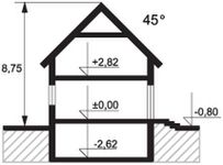 Graficzne opracowanie rzutów poglądowych widocznych na karcie projektu zostało wykonane przez Extradom.pl. Prezentowane przez Extradom.pl wizualizacje wykonane zostały przez autora projektu i należy poczytywać je jedynie za przykład i propozycję wykończenia, wizję architektoniczną autora projektu. Ostateczne wykończenie budynku może nastąpić na wiele sposobów. Szczegółowe rozwiązania zastosowane w oferowanej dokumentacji - w tym również ilość, lokalizacje i wygląd okien, drzwi, kominów - mogą w niewielkim stopniu różnić się od prezentowanej wizualizacji budynku.