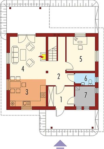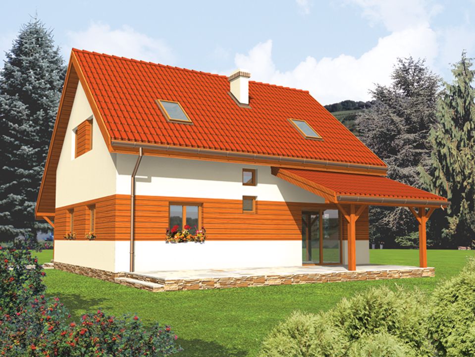 Graficzne opracowanie rzutów poglądowych widocznych na karcie projektu zostało wykonane przez Extradom.pl. Prezentowane przez Extradom.pl wizualizacje wykonane zostały przez autora projektu i należy poczytywać je jedynie za przykład i propozycję wykończenia, wizję architektoniczną autora projektu. Ostateczne wykończenie budynku może nastąpić na wiele sposobów. Szczegółowe rozwiązania zastosowane w oferowanej dokumentacji - w tym również ilość, lokalizacje i wygląd okien, drzwi, kominów - mogą w niewielkim stopniu różnić się od prezentowanej wizualizacji budynku.