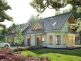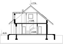 Graficzne opracowanie rzutów poglądowych widocznych na karcie projektu zostało wykonane przez Extradom.pl. Prezentowane przez Extradom.pl wizualizacje wykonane zostały przez autora projektu i należy poczytywać je jedynie za przykład i propozycję wykończenia, wizję architektoniczną autora projektu. Ostateczne wykończenie budynku może nastąpić na wiele sposobów. Szczegółowe rozwiązania zastosowane w oferowanej dokumentacji - w tym również ilość, lokalizacje i wygląd okien, drzwi, kominów - mogą w niewielkim stopniu różnić się od prezentowanej wizualizacji budynku.