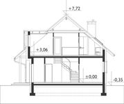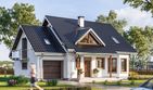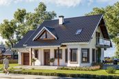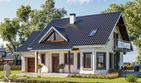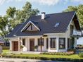 Graficzne opracowanie rzutów poglądowych widocznych na karcie projektu zostało wykonane przez Extradom.pl. Prezentowane przez Extradom.pl wizualizacje wykonane zostały przez autora projektu i należy poczytywać je jedynie za przykład i propozycję wykończenia, wizję architektoniczną autora projektu. Ostateczne wykończenie budynku może nastąpić na wiele sposobów. Szczegółowe rozwiązania zastosowane w oferowanej dokumentacji - w tym również ilość, lokalizacje i wygląd okien, drzwi, kominów - mogą w niewielkim stopniu różnić się od prezentowanej wizualizacji budynku.