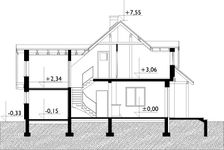 Graficzne opracowanie rzutów poglądowych widocznych na karcie projektu zostało wykonane przez Extradom.pl. Prezentowane przez Extradom.pl wizualizacje wykonane zostały przez autora projektu i należy poczytywać je jedynie za przykład i propozycję wykończenia, wizję architektoniczną autora projektu. Ostateczne wykończenie budynku może nastąpić na wiele sposobów. Szczegółowe rozwiązania zastosowane w oferowanej dokumentacji - w tym również ilość, lokalizacje i wygląd okien, drzwi, kominów - mogą w niewielkim stopniu różnić się od prezentowanej wizualizacji budynku.