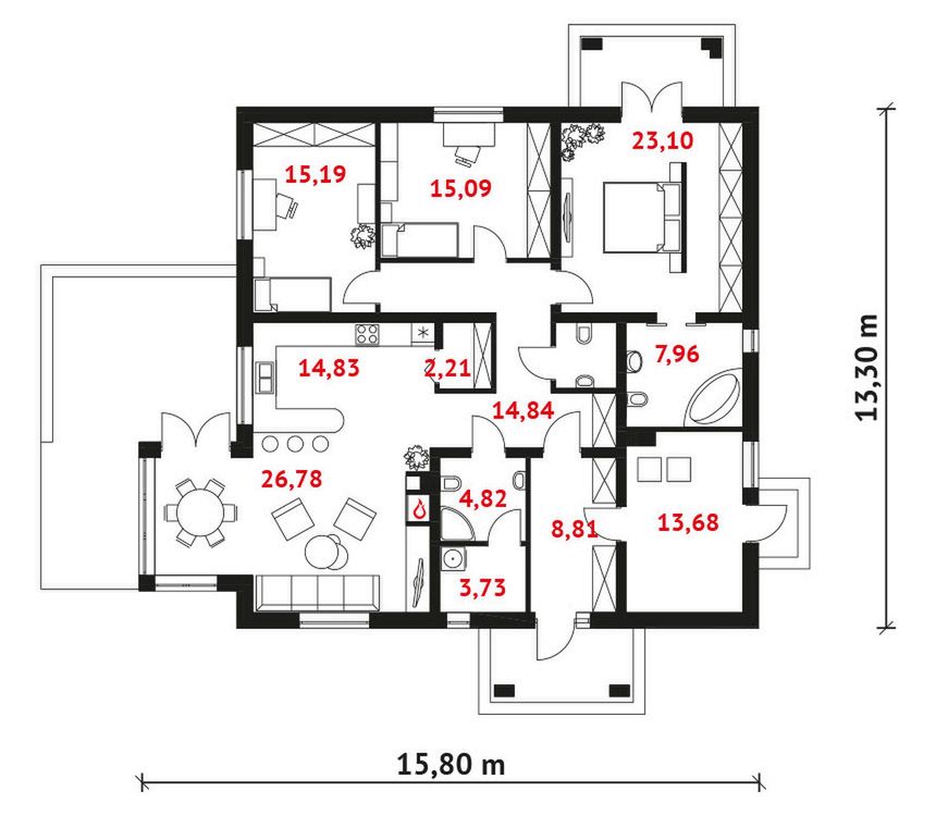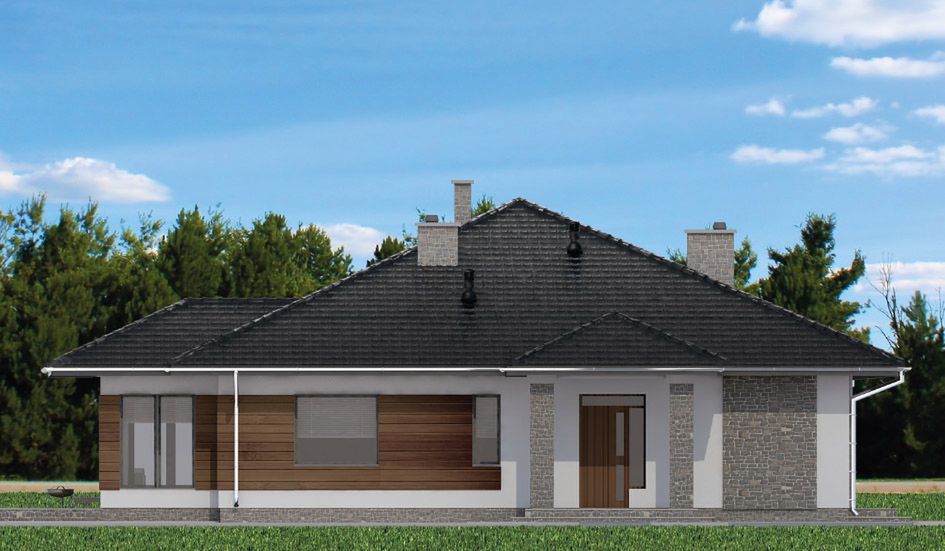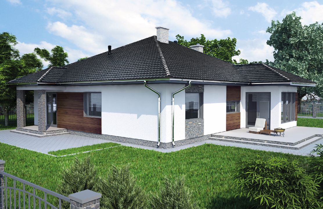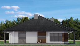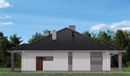 Graficzne opracowanie rzutów poglądowych widocznych na karcie projektu zostało wykonane przez Extradom.pl. Prezentowane przez Extradom.pl wizualizacje wykonane zostały przez autora projektu i należy poczytywać je jedynie za przykład i propozycję wykończenia, wizję architektoniczną autora projektu. Ostateczne wykończenie budynku może nastąpić na wiele sposobów. Szczegółowe rozwiązania zastosowane w oferowanej dokumentacji - w tym również ilość, lokalizacje i wygląd okien, drzwi, kominów - mogą w niewielkim stopniu różnić się od prezentowanej wizualizacji budynku.