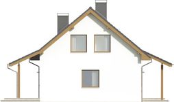 Graficzne opracowanie rzutów poglądowych widocznych na karcie projektu zostało wykonane przez Extradom.pl. Prezentowane przez Extradom.pl wizualizacje wykonane zostały przez autora projektu i należy poczytywać je jedynie za przykład i propozycję wykończenia, wizję architektoniczną autora projektu. Ostateczne wykończenie budynku może nastąpić na wiele sposobów. Szczegółowe rozwiązania zastosowane w oferowanej dokumentacji - w tym również ilość, lokalizacje i wygląd okien, drzwi, kominów - mogą w niewielkim stopniu różnić się od prezentowanej wizualizacji budynku.