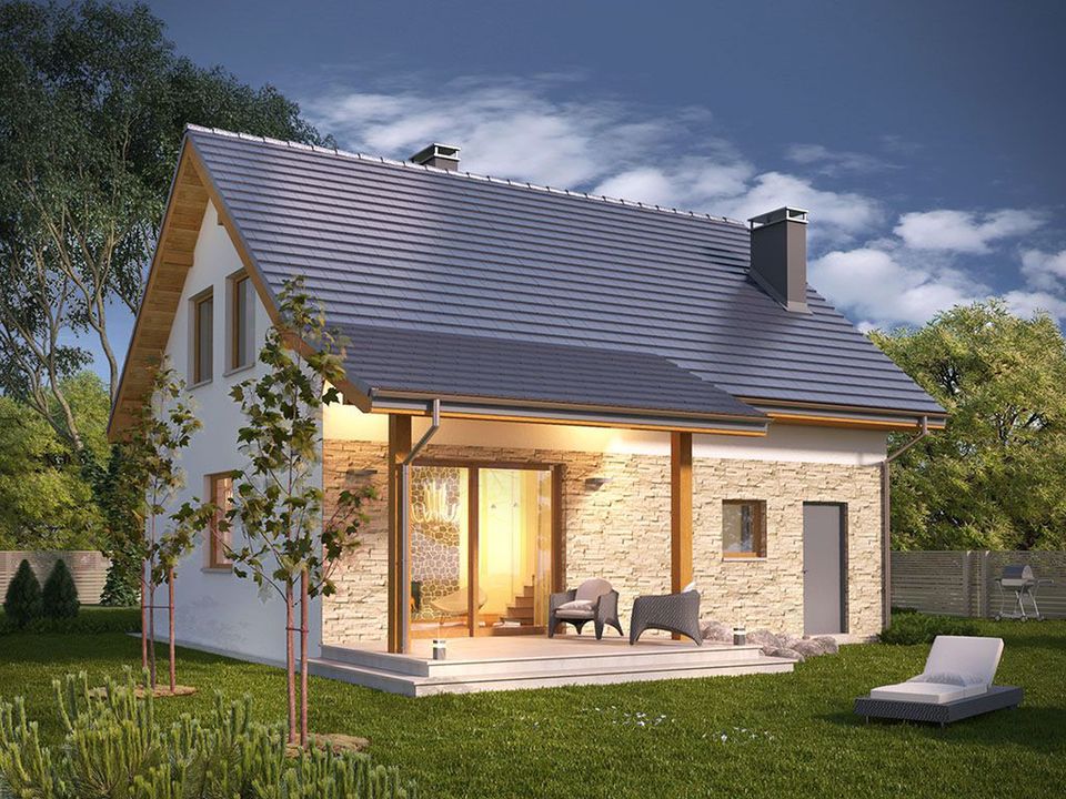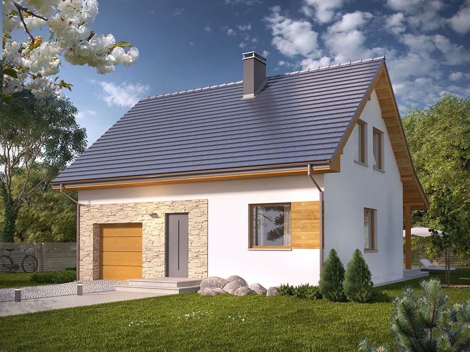 Dom wybudować można z bloczków z betonu komórkowego, docieplonych warstwą styropianu. Strop zastosowano gęstożebrowy typu Teriva, a więźba dachowa wykonana jest z drewna. Pokrycie dachu dachówką ceramiczną lub betonową. Ewentualne zmiany w zakresie materiałów budowlanych można śmiało wprowadzać na etapie adaptacji. Dokumentacja dostępna jest także w wariancie lustrzanego odbicia.